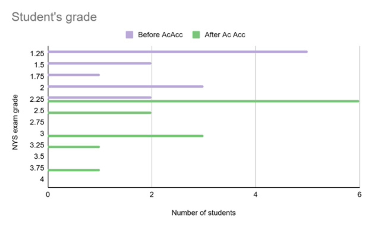 At ENYMSE Middle School in Brooklyn, the Academic Accelerator was delivered to 6th, 7th, and 8th grade students in small groups of 3–8, twice a week for 45 minutes per session. The program was primarily delivered in Spanish. After 12–14 weeks, math scores improved by 60%, demonstrating the impact of our student-centered, bilingual approach.